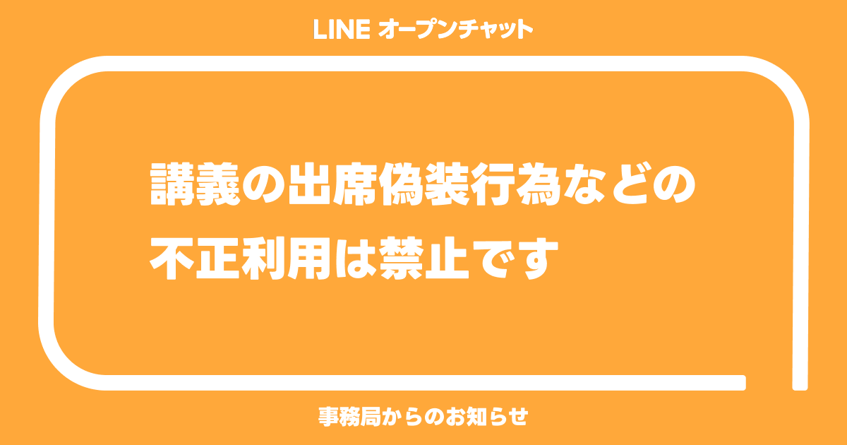 - オープンチャット名や説明に「○○大学 出席」というように出席偽装が疑われる記載